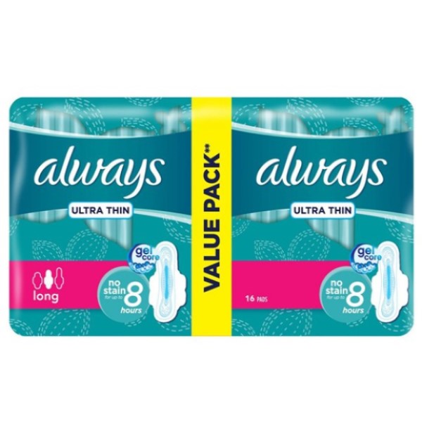 Always sanitary napkins, UltraThin model, long size, pack of 16