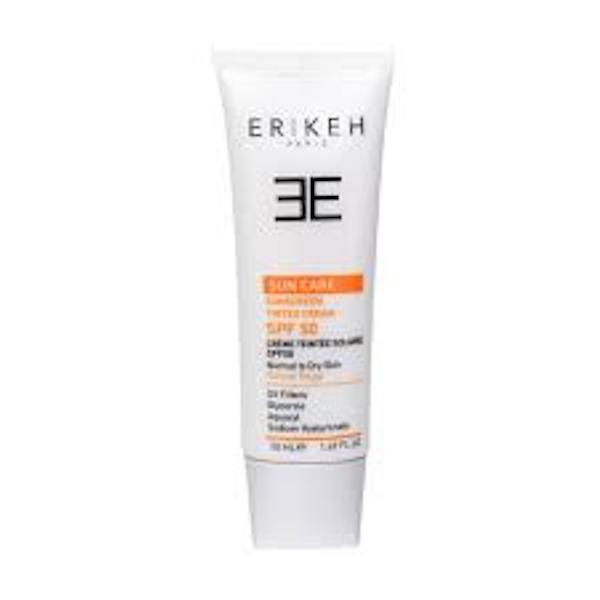 ضد آفتاب اریکه پوست خشک یکی از محصولات محافظت از پوست با SPF 50 است که به طور همزمان مانع از آسیب اشعه های UVA و UVB به بافت پوست صورت می شود. کرم ضد آفتاب اریکه برای پوست خشک سرعت جذب بالایی داشته و بدون برجای گذاشتن اثر چربی و حس سنگینی به بافت پوست نفوذ می کند. از آنجایی که این محصول برای پوست خشک و نرمال تولید شده است دارای خواص آبرسانی و مرطوب کنندگی نیز می باشد و در رفع خشکی و کم آبی پوست موثر است. در فرمولاسیون ضدآفتاب اریکه برای پوست خشک از اتیل هگزیل سالیسیلات و اتیل هگزیل متوکسی سینامات به عنوان فیلترهای شیمیایی نور خورشید و از تیتانیوم دی اکساید به منظور انعکاس اشعه های مضر نور خورشید (فیلتر فیزیکی) بهره برده شده است. از مواد آبرسان و مرطوب کننده در ترکیبات ضدآفتاب اریکه پوست خشک می توان به گلیسیرین، عصاره برگ آلوئه ورا و توکوفریل استات اشاره کرد. اما مهم ترین ترکیب رطوبت رسان این کرم، ماده آکواکسیل است که اثر مرطوب کنندگی بسیار بالایی دارد. ضدآفتاب اریکه پوست خشک برای پوست معمولی نیز مناسب است. این محصول در برابر آب و تعریق مقاوم است و با قابلیت تجدید و پاک کردن آسان در طول روز به دفعات مکرر قابل استفاده می باشد.